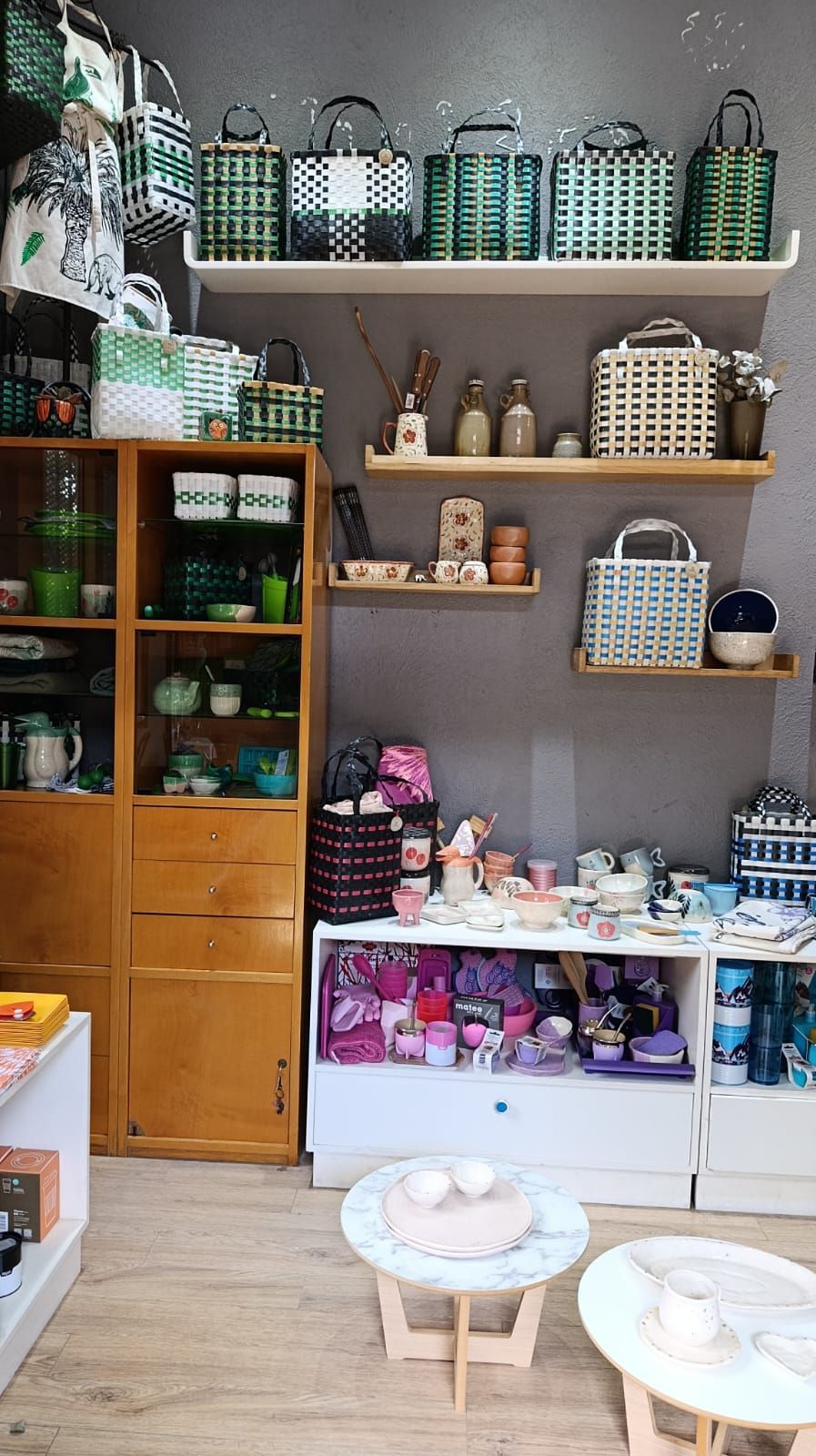 Objetos únicos hechos a mano: canastos de zunchos reciclados, cerámica artesanal, azulejos esmaltados y mucho más.